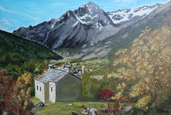 C'est seulement à l'âge de la retraite que j'ai intégré un petit atelier de mon village où pendant quatre années je me suis initiée à quelques rudiments et là j'ai adopté la peinture à l'huile que je pratique maintenant, régulièrement, seule chez moi.