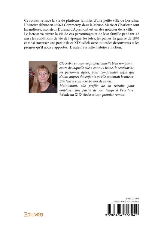 Un roman très documenté, sur la vie rude d’autrefois et qui va vous faire découvrir l’histoire de cet ancien pays, le Banat, mais pas que… L’histoire va vous promener à travers la Lorraine, vous faire découvrir des personnages meusiens devenus célèbres, les écoles agricoles pénitentiaires, le travail des enfants, le tout agrémenté de beaucoup d’anecdotes. Mais aussi, vous allez retrouver Marie, Basile les personnages de « Balade au XIXe siècle ». Que sont-ils devenus ?